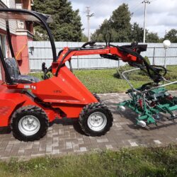 3-cylinder-Diesel-engine, 20HP · Speed adjustment by hydrostat, max. speed approximately 15 km/h · Total height 2050 mm · Total width 1050 mm · Total length (without clamp) 2400 mm · Ground clearance 180 mm · Total weight (without clamp) 800 kg · Maximum weight of stone formation 300 kg · Lifting off height max. 1600 mm ·