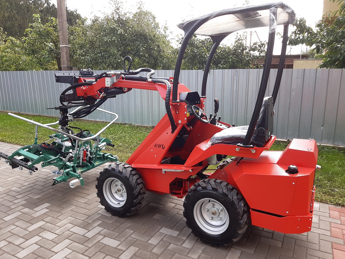 3-cylinder-Diesel-engine, 20HP · Speed adjustment by hydrostat, max. speed approximately 15 km/h · Total height 2050 mm · Total width 1050 mm · Total length (without clamp) 2400 mm · Ground clearance 180 mm · Total weight (without clamp) 800 kg · Maximum weight of stone formation 300 kg · Lifting off height max. 1600 mm ·
